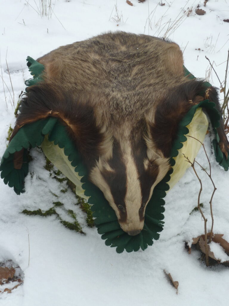Wir schauten uns einige Tierpräparate an und stimmten uns auf das Thema ein. Erstaunt merkten wir, dass unsere Waldkinder sehr gut über die Tiere im Wald informiert sind. Sie sagten, dass Hasen, Vögel, Eichhörnchen und Wildschweine keinen Winterschlaf machen. Wir lasen nach, dass Igel, Siebenschläfer und Fledermäuse Winterschlaf machen. „Die Fledermäuse hängen sich kopfüber an den Ast und dann decken sie sich mit ihren Flügeln zu.”, so ein Kinderbeitrag.