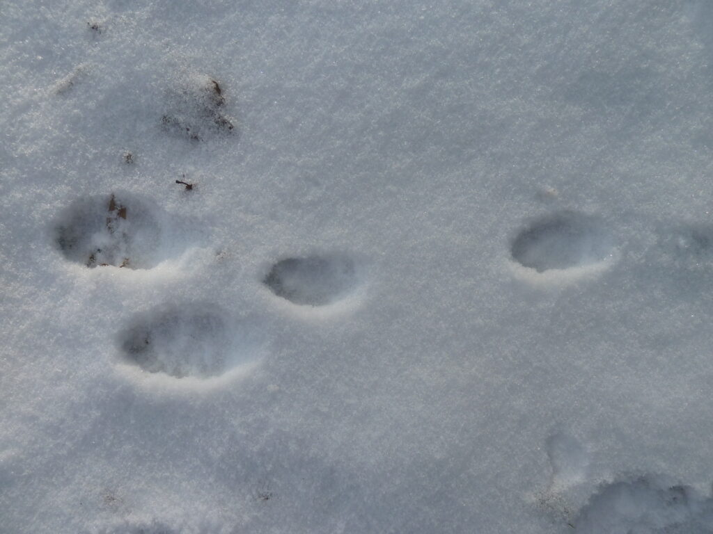 Gleich frühmorgens, teilweise war es noch dunkel, sind wir mit einer Lampe vorsichtig durch den verschneiden Wald gestreift und haben nach Tierspuren Ausschau gehalten. Diese haben wir fotografiert und dann anschließend zusammen im Bestimmungsbuch nachgeschaut, zu welchem Tier die Spuren wohl gehören. Entdeckt haben wir Eichhörnchen, Reh-, viele Hasen- und Vogelspuren.