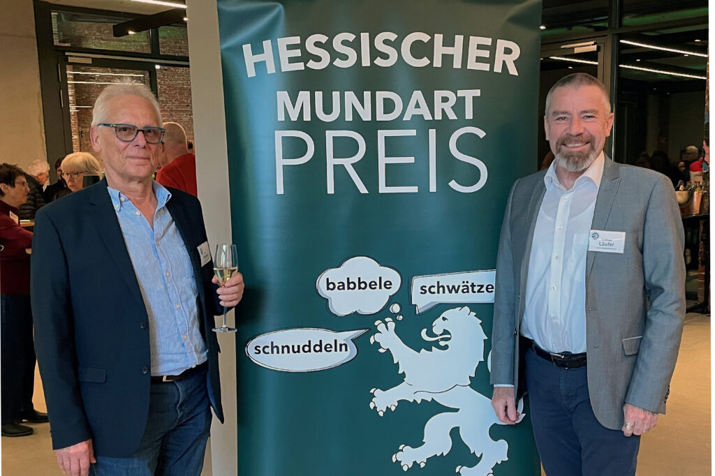 Horst Mandler (links) und Andreas Läufer (rechts) vor der Preisverleihung des Hessischen Mundartpreises in Marburg
