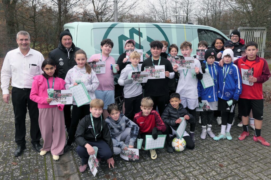 (vm).Schule soll Spaß machen, aber man muss Schule auch ernst nehmen. Das fällt leichter, wenn man alles auch sportlich sieht. Der DFB hat 2025 das „Jahr der Schule” ausgerufen. Damit will er und seine Landesverbände neue Impulse setzten, um wieder mehr Sport und Bewegung in den Schulalltag zu transportieren. Konsequent, niederschwellig und nachhaltig erfolgte dies auch kürzlich an der GGL (Gesamtschule Gleiberger Land). Die Jahrgangsstufe der 6. Klassen waren auf dem benachbarten Kunstrasenplatz der Schule, mit ihrer Lehrerin Maria Krenig, versammelt. Am Eingang zum Sportgelände parkte das DFB-Mobil. Die beiden Teamer Peter Antschischkin und Karl-Otto Mank waren gekommen, um Spaß und Freude am gemeinsamen Fußballspiel zu entwickeln. Die Trainingseinheit umfasste neben den rein fußballerischen Aspekten auch Koordination, Beweglichkeit und Life-Kinetikübungen. Die besondere Sportstunden war kein Spaziergang und der Lerneffekt entstand auch schnell aus der Erkenntnis, ohne Fleiß kein Preis. „Es hat uns viel Spaß gemacht”, hörte man unisono von den Schülern. Auch die Sportlehrerin konnte wichtige Erkenntnisse aus dem spannenden Termin mitnehmen. Schulleiter Gabriel Verhoff schaute kurz vorbei, um sich selber auch einen Eindruck zu machen.