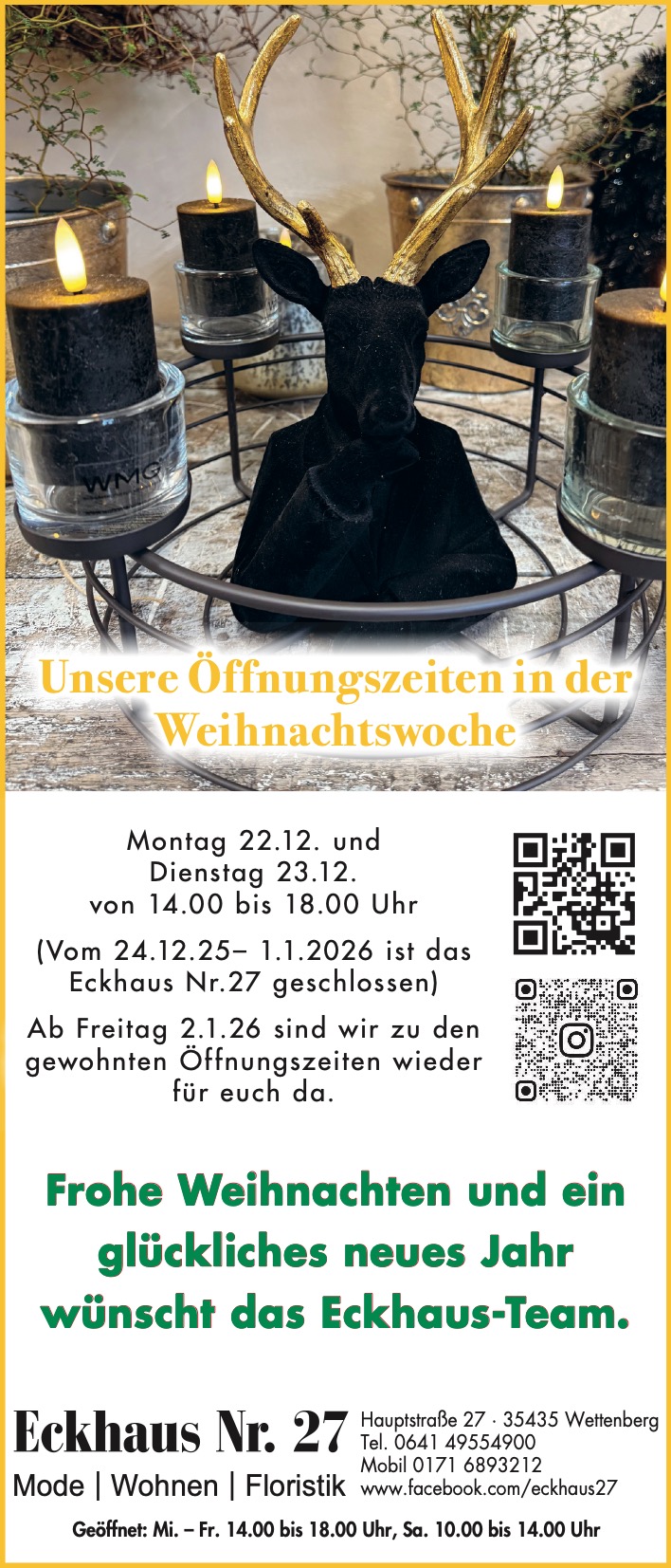 Traditionell spielt in diesem Jahr wieder eine Abordnung der Kapelle des Volksmusikvereins Wettenberg, am 24. Dezember, an verschiedenen Plätzen in Wettenberg, Weihnachtslieder.