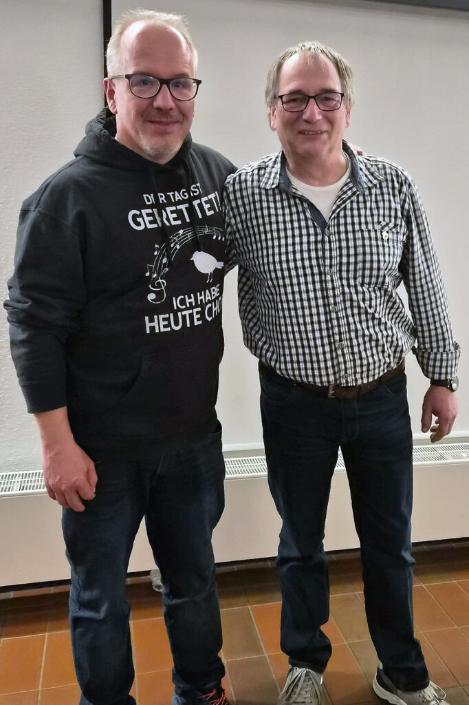(vm).Zu Beginn der 2000er Jahre begann die Umbruchphase in der Gleiberger Sängervereinigung, die dem 147 Jahre alten Verein zu dem neuen Schwung verhalf. Es war die richtige Entscheidung und der richtige Weg, denn davon profitiert der Verein noch immer. Mit Melanie Funk, die sich krankheitsbedingt entschuldigen ließ und Steve Henkelmann konnte Vorsitzender Georg Schlierbach in der Jahreshauptversammlung zwei Mitglieder ehren, die sich vor 25 Jahren zu einem Beitritt in den Chor entschieden haben. Das Jahr 2025 verlief nach einem aktiveren Vorjahr vergleichsweise ruhig, wie die 2. Schriftführerin, Silke Schnurr in ihrem Rückblick berichtete. Unter dem Motto „Alter Chor sucht frisches Blut…” sorgte eine Fußgruppe des Vereins als Vampire beim Krofdorf-Gleiberger Faschingszug für viel Aufmerksamkeit. Zwei Probentagen im Frühjahr und Herbst des Berichtszeitraums folgte als Höhepunkt im Oktober der Auftritt beim Benefizkonzert des Chorverbands Lahn-Dill zum Gallusmarkt in der vollbesetzten Wetzlarer Hospitalkirche. Beschlossen wurde das Jahr mit einem Chorauftritt im Seniorenzentrum Gleiberger Land sowie dem „1. Wettenberger WeihnachtsMitsingDing” auf dem Gleiberger Nikolausfest, das für großen Zuspruch sorgte. Bei den turnusmäßigen Vorstandswahlen wurden der 1. Vorsitzende Georg Schlierbach, der 1. Kassierer Uwe Knorz, die 2. Schriftführerin Silke Schnurr und die Beisitzerin Gaby Fahrland-Mandler in ihren Ämtern bestätigt. Um den Notenbestand des Chores wird sich in bewährter Weise Andreas Lautz kümmern. Für fleißigen Probenbesuch wurde ihm und Ute Schuldes vom 1. Vorsitzenden gedankt. Im laufenden Jahr steht die Mitgestaltung zweier Konzerte am 13. Juni in Münchholzhausen sowie am 19. September in Hohenahr auf dem Programm der Sängervereinigung. Die Vorbereitungen hierfür sowie für das am 19. Dezember in der Krofdorfer Margarethenkirche stattfindende Adventskonzert des Chores, laufen dieser Tage an mit einem Probenwochenende im Vogelsberg. Interessierte, die einen Ausgleich zu Job und Alltag suchen, sind herzlich willkommen, die Chorproben der Sängervereinigung montags um 20 Uhr im Gemeinschaftshaus Gleiberg (Burgstraße 65) zu besuchen.